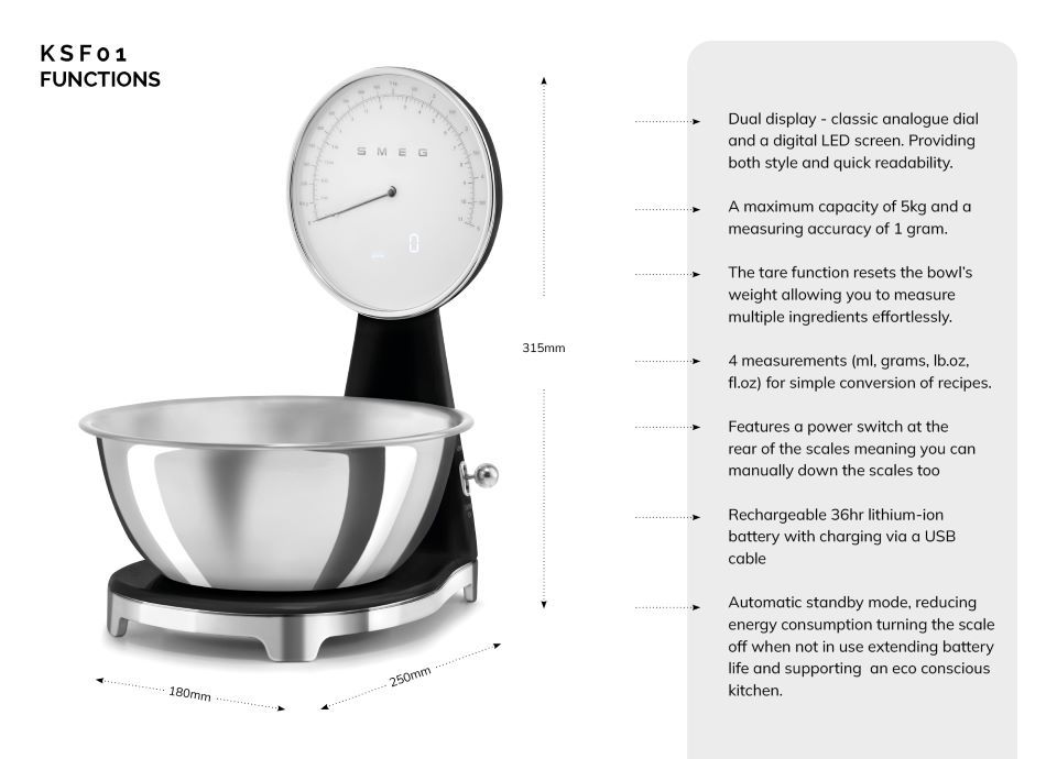 The Smeg scale is the perfect choice for those who appreciate both elegant design and precise measurements in their cooking.
